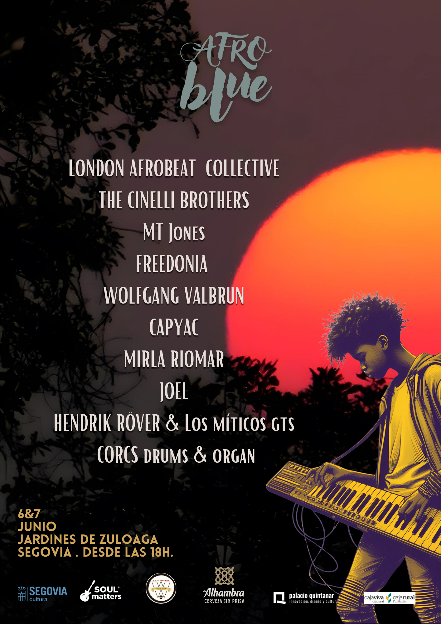 Inicio AFRO BLUE FESTIVAL Artistas The Cinelli Brothers Saber más London Afrobeat Collective Saber más MT Jones Saber más Wolfgang Valbrun Saber más Freedonia Saber más Joel Saber más Capyac Saber más Mirla Riomar Saber más Corcs drum & Organ Saber más Hendrik Röver y Los Míticos GT´s Saber más Ediciones anteriores: Gracias por venir. 2022 Fecha : Septiembre 2022 2023 Fecha : Junio 2023 2024 Fecha : Junio 2024 2025 Fecha : Junio 2025 Novedades Redes sociales Síguenos en nuestras redes sociales para mantenerte informado. Spotify Facebook Instagram Youtube Twitter Youtube Ubicación Jardín de los zuloaga P.º Santo Domingo de Guzmán, 500, 40003 Segovia